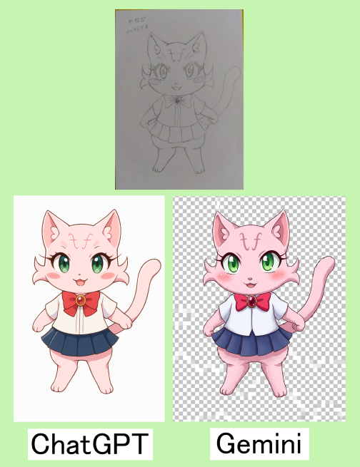 なるほど、それぞれでイメージが違いますが、確かに生成できました! 残念ながら、背景についてはPNG形式でも透明にできませんでしたが、白色にして切り取る手もありますし、使い方次第では同等レベルで使用できそうです。